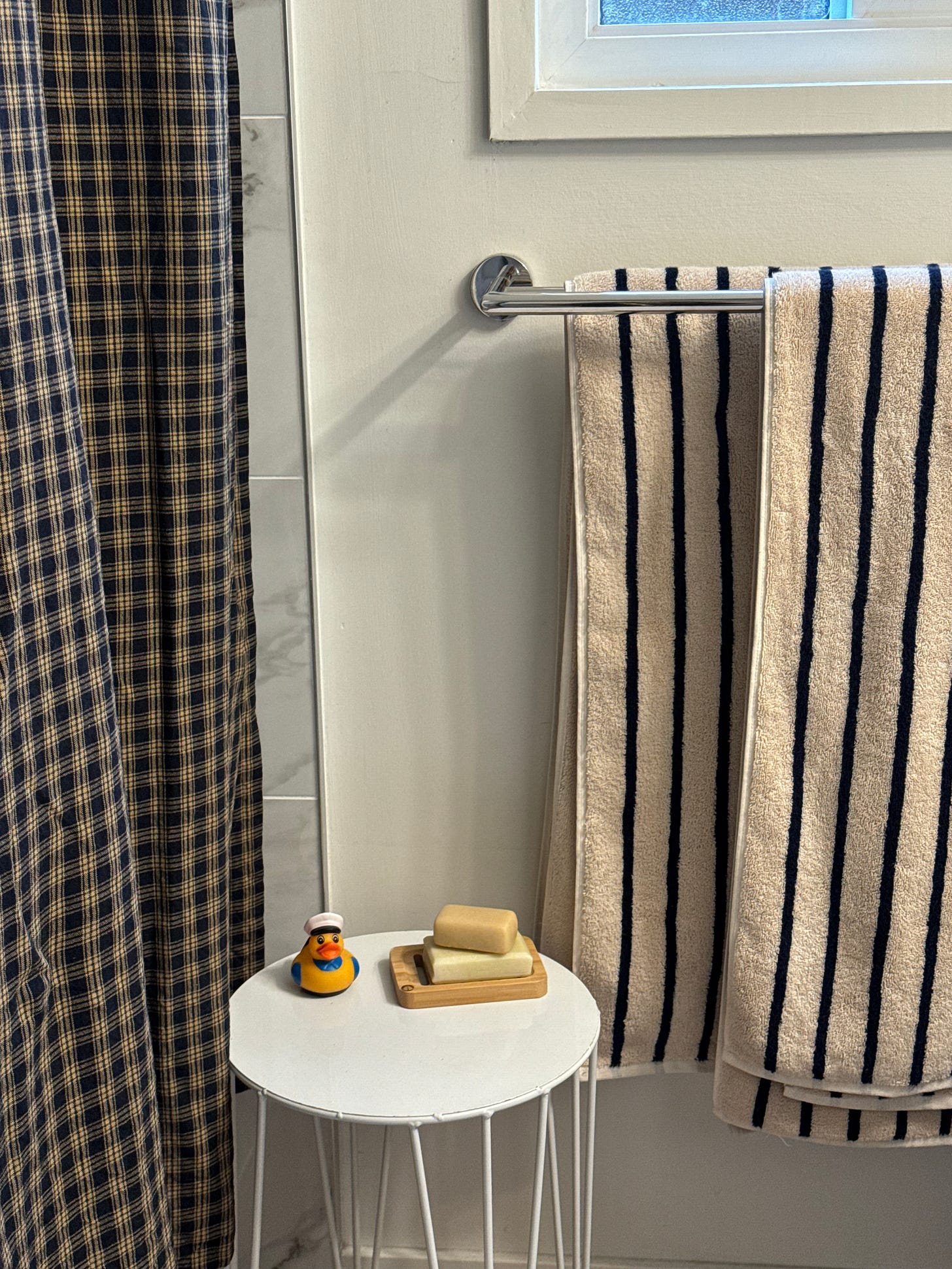 I also upgraded my shower curtain to one that has way more charm, and I really think it makes a big difference in my ensuite.