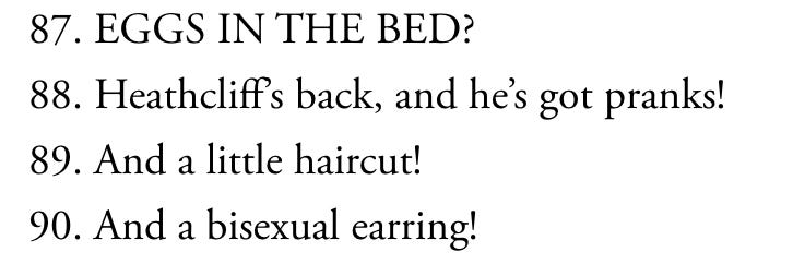 My sister-in-law sent me a voice note the other day describing her literary turnoff: when a chapter ends with a single, overly polished line that tries to neatly summarize some grand epiphany. That kind of sweeping, cliché platitude gives her the ick, because people don’t actually think or speak in that kind of simplistic way. We don’t always have words to neatly describe what we’re feeling, or even know what we are feeling in the first place. I felt Heart the Lover leaned into this a bit too often, which is why I docked it a point, even though, overall, I did enjoy it.